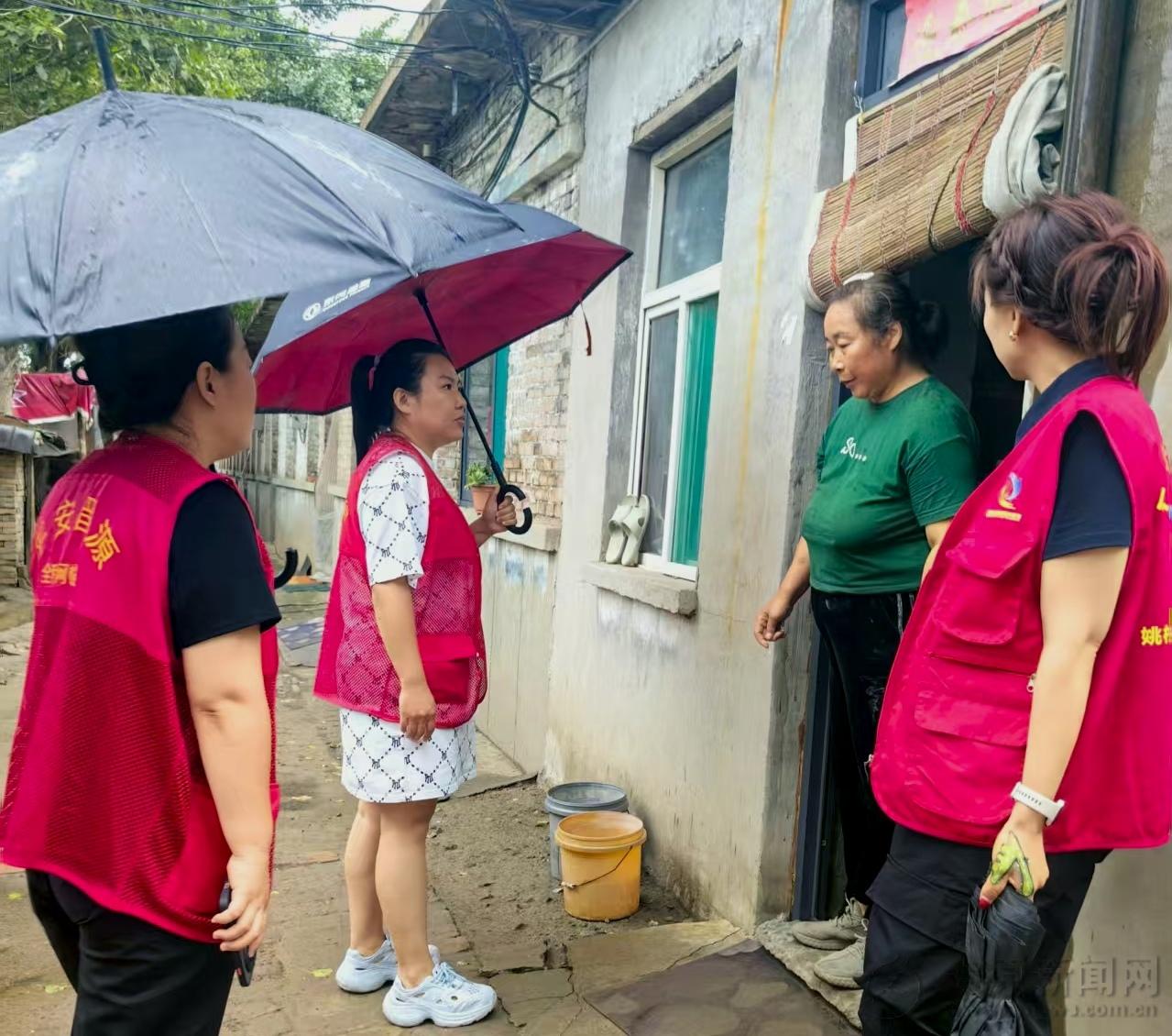 (图为姚村社区网格员对存在风险的危旧房屋住户进行重点提醒与劝导)